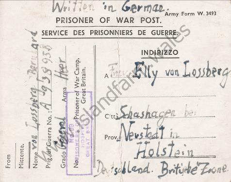 I am alive and currently in British captivity I am healthy. My address is as below. Please return the card immediately |