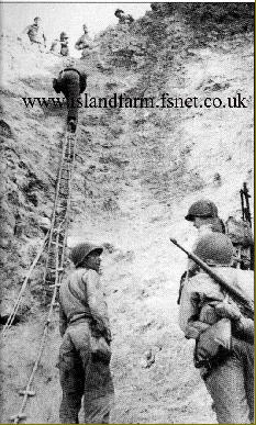 Displaying raw courage the Rangers come ashore with fire support from the destroyers USS Satterlee and HMS Talybont, and climbed the Pointe du Hoc under German fire, with the first troops reaching the top in under five minutes !