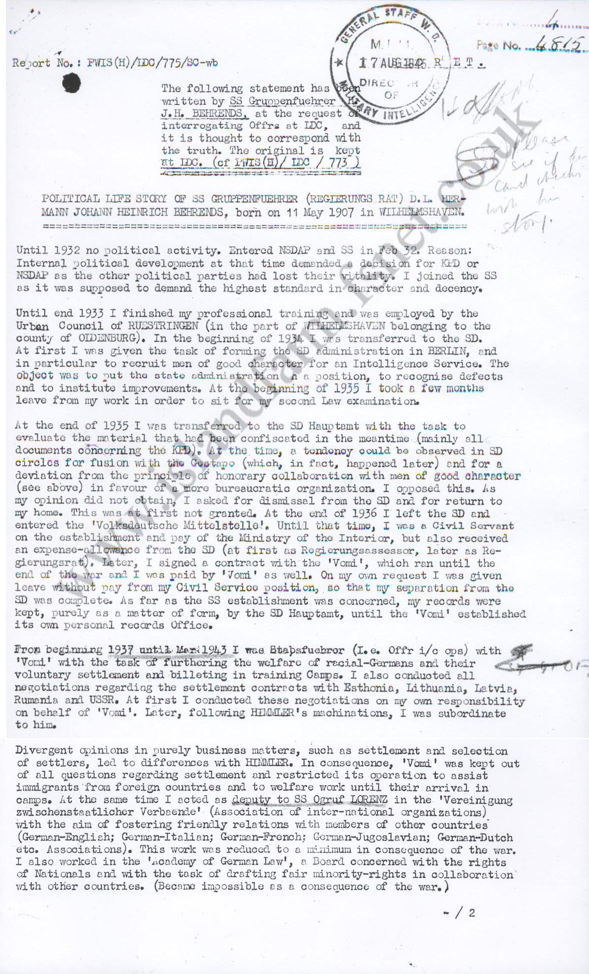 Captured in Flensburg on 5 July 1945 following his voluntary surrender to the British authorities. Transferred to Great Britain and interrogated at the London District Cage in August 1945